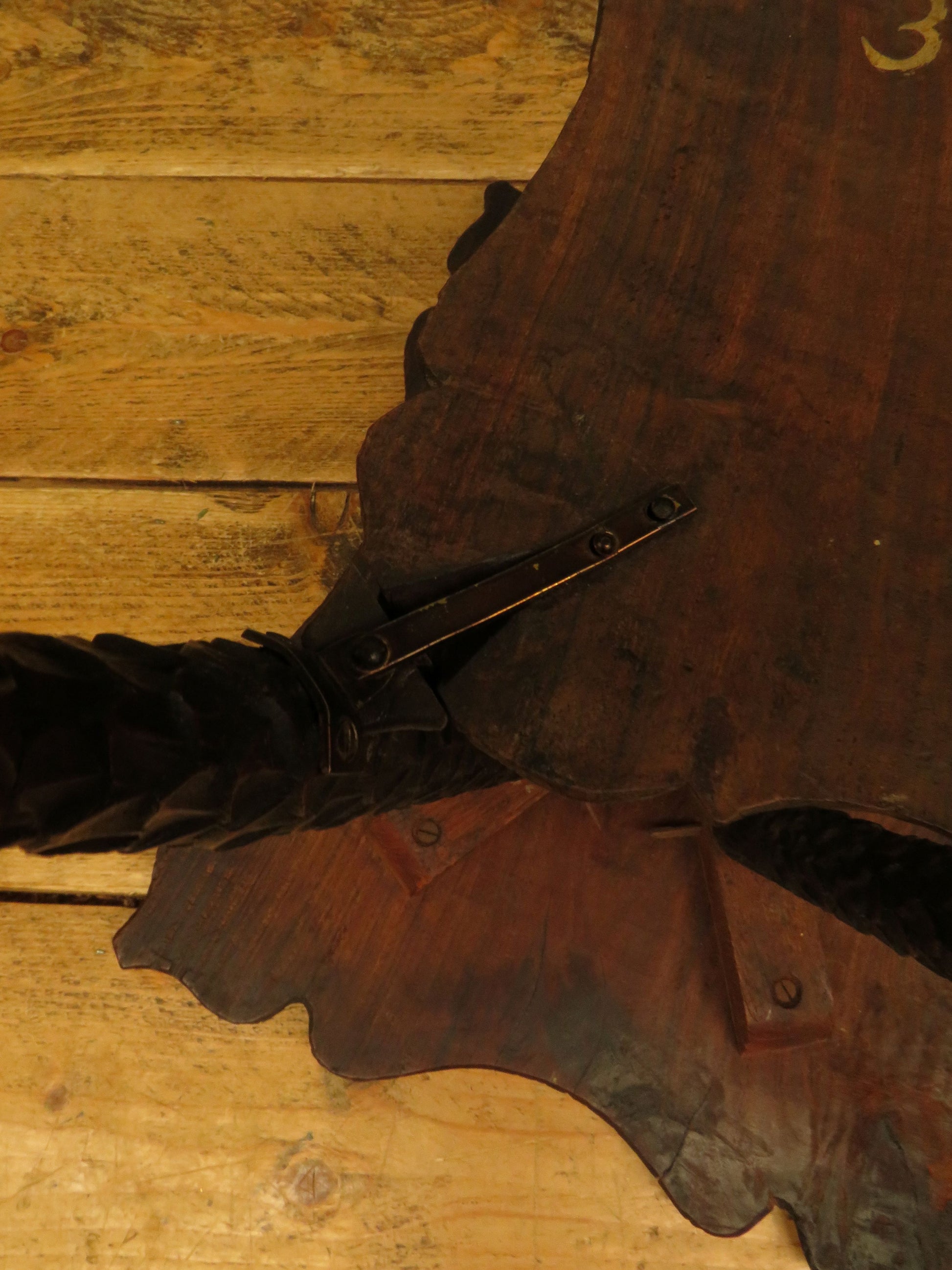 This piece is generally in good condition but due it construction design does have movement if you push it from side to side. One leg has an area of damage, as shown and there is a bracket fixed to one leg on the underside of the under-tier.