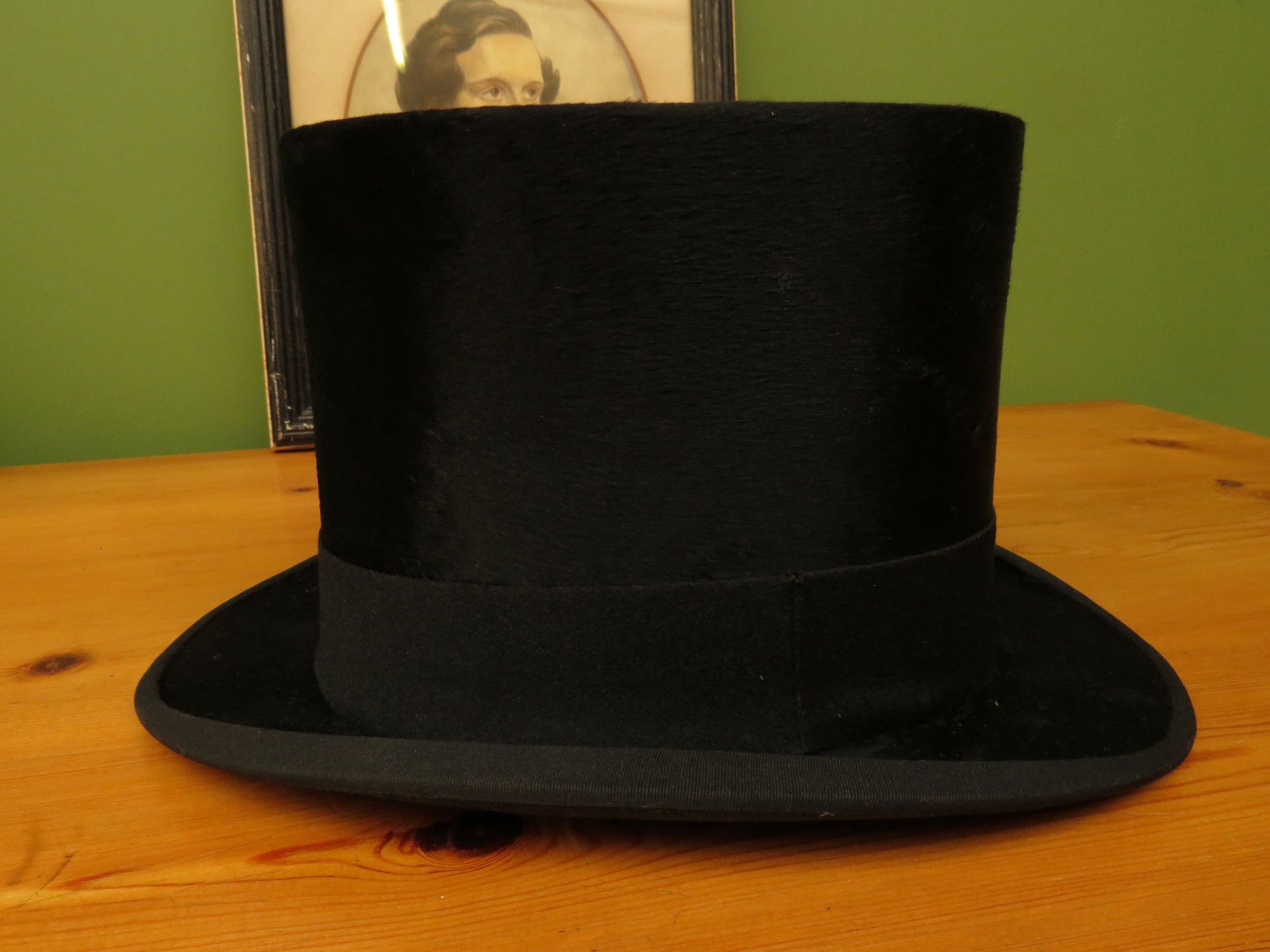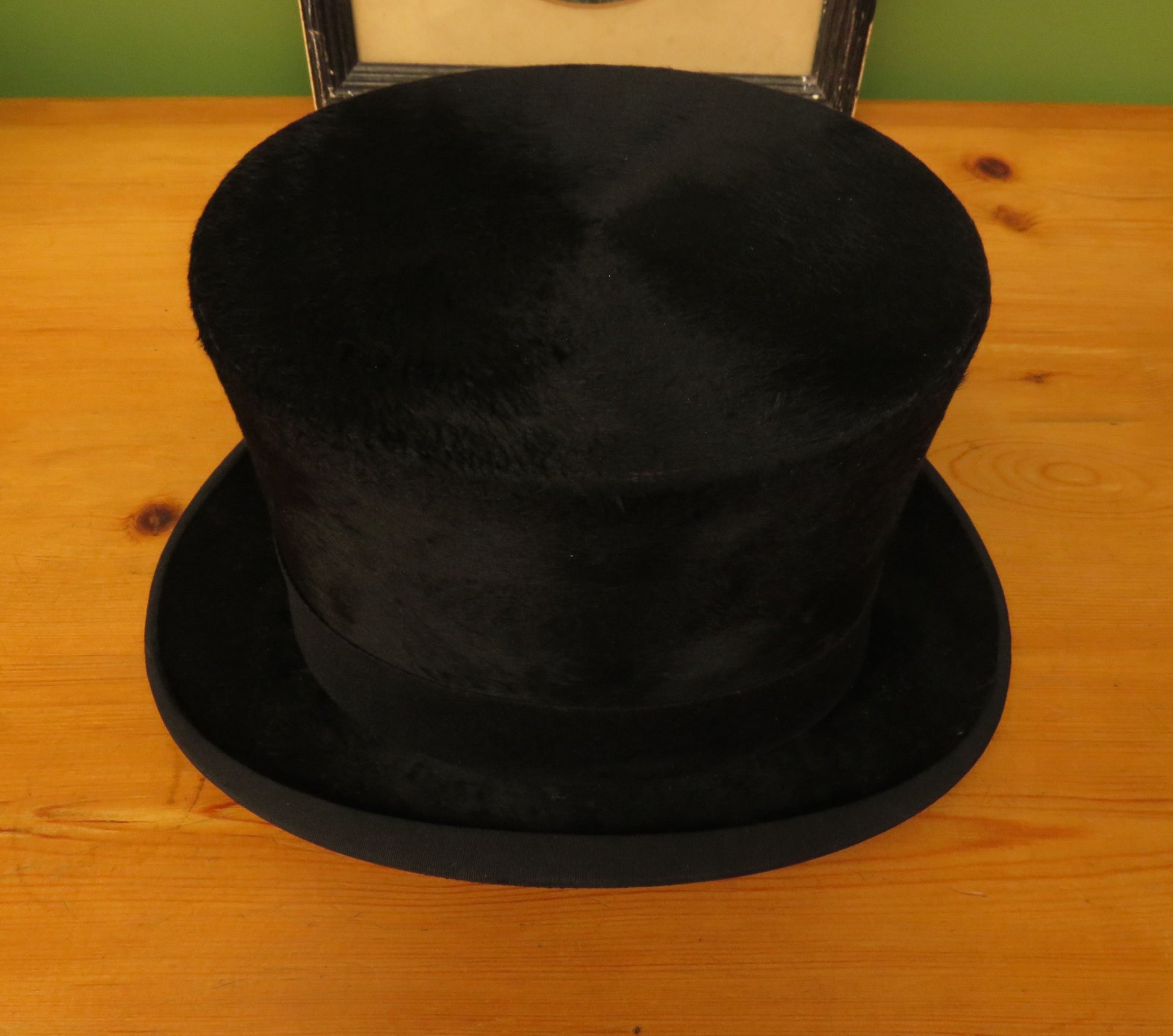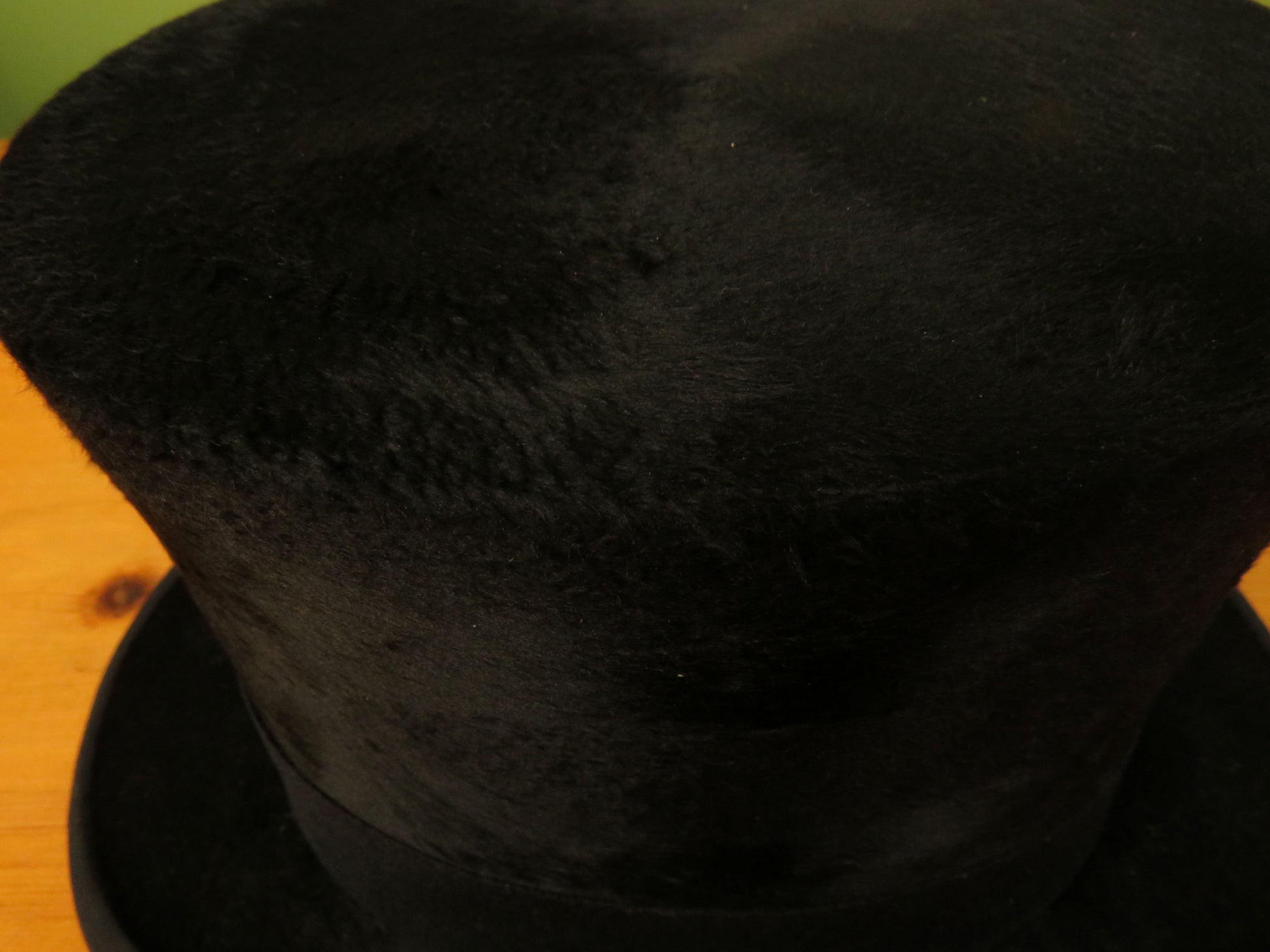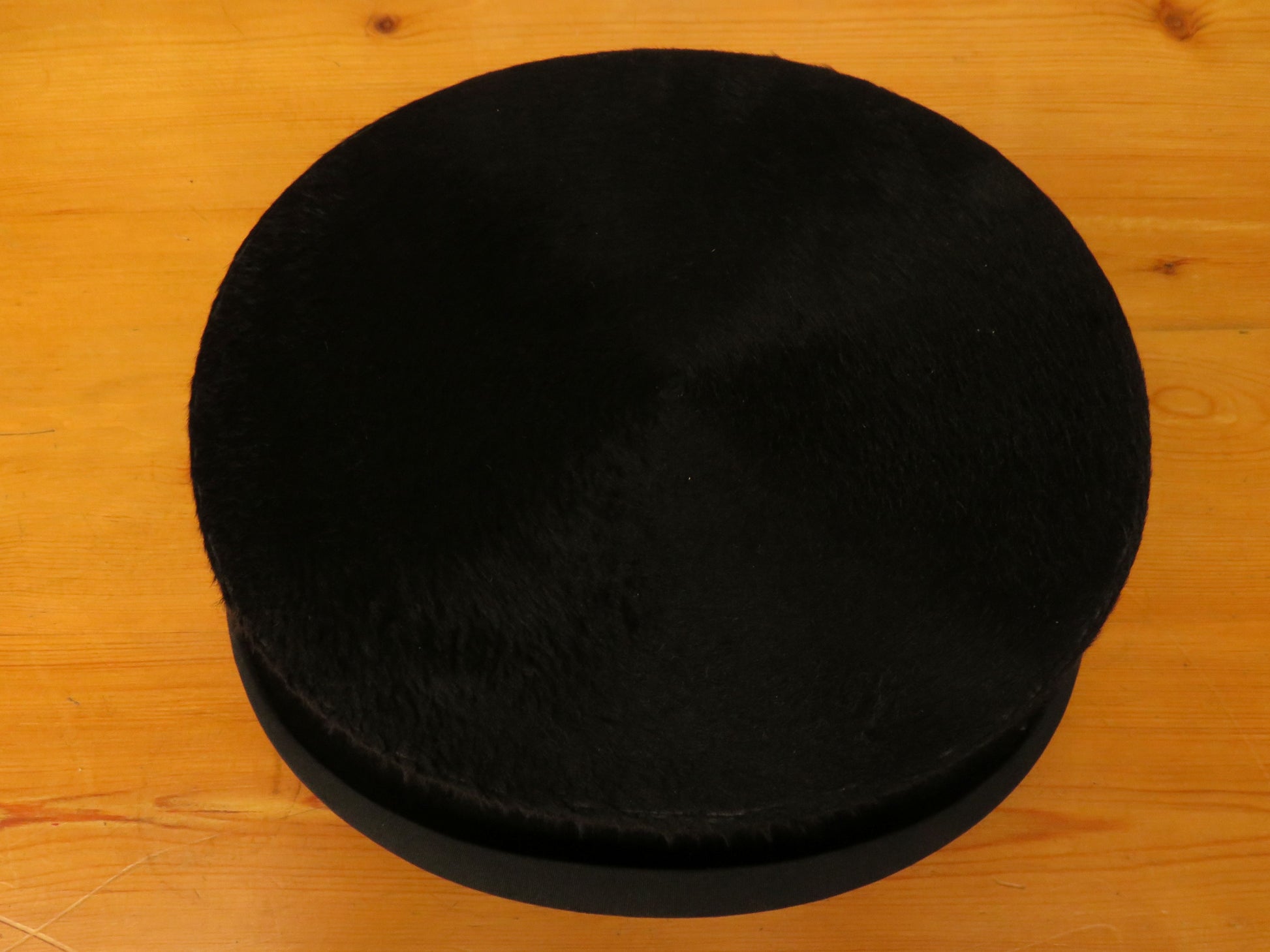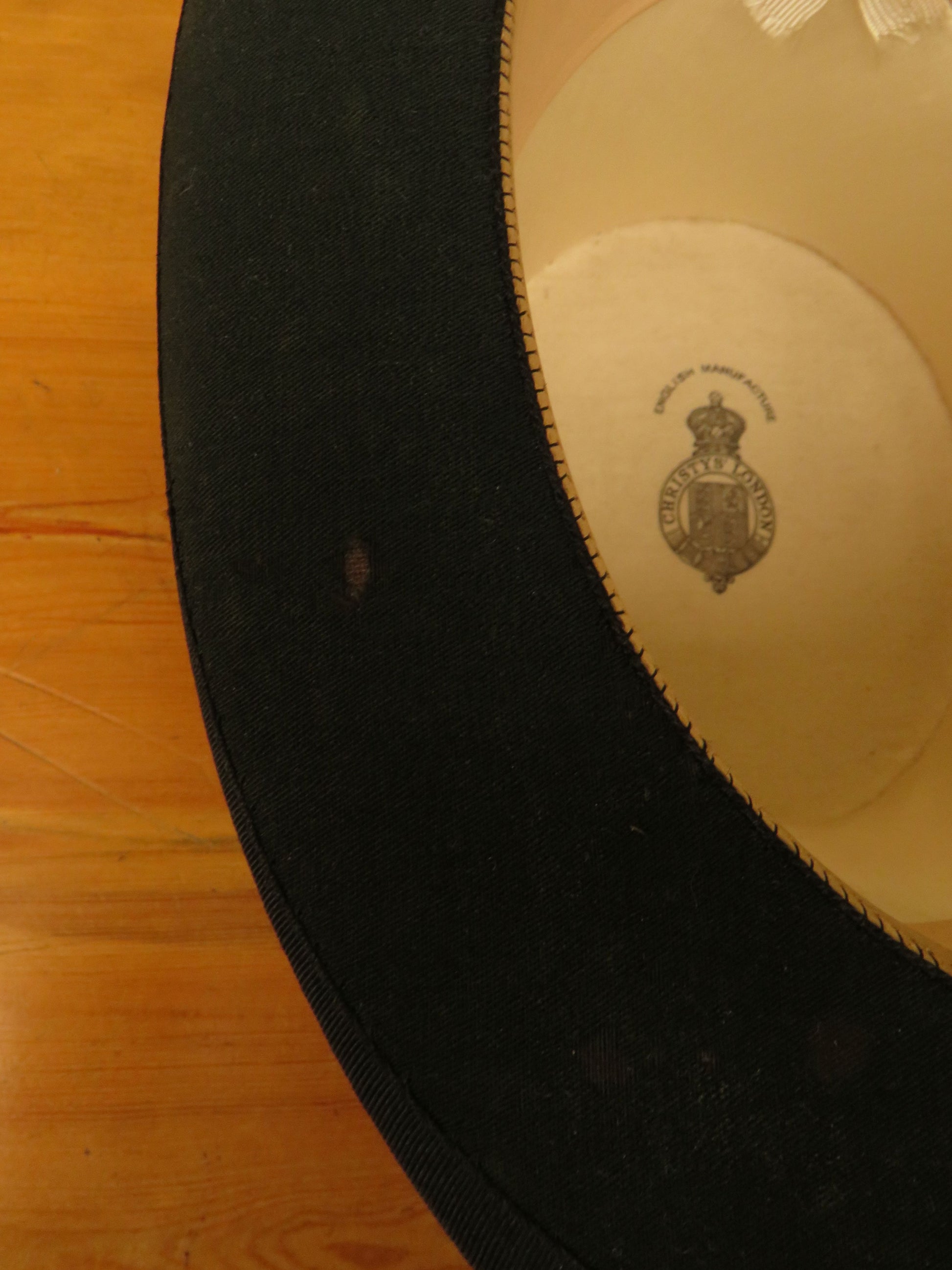 The hat is in good condition with minimal wear to the top edge and two minor holes to the underside of the brim.