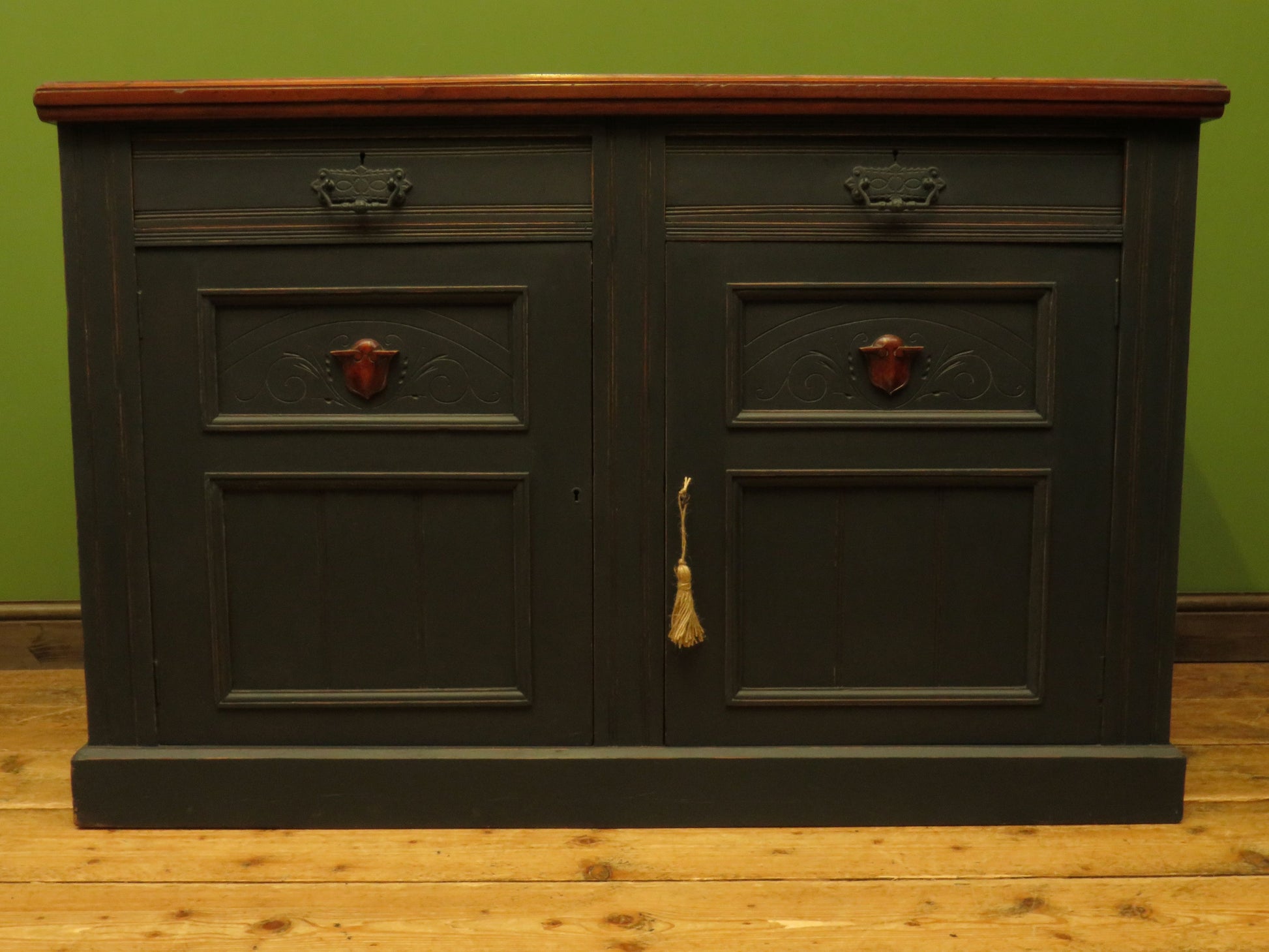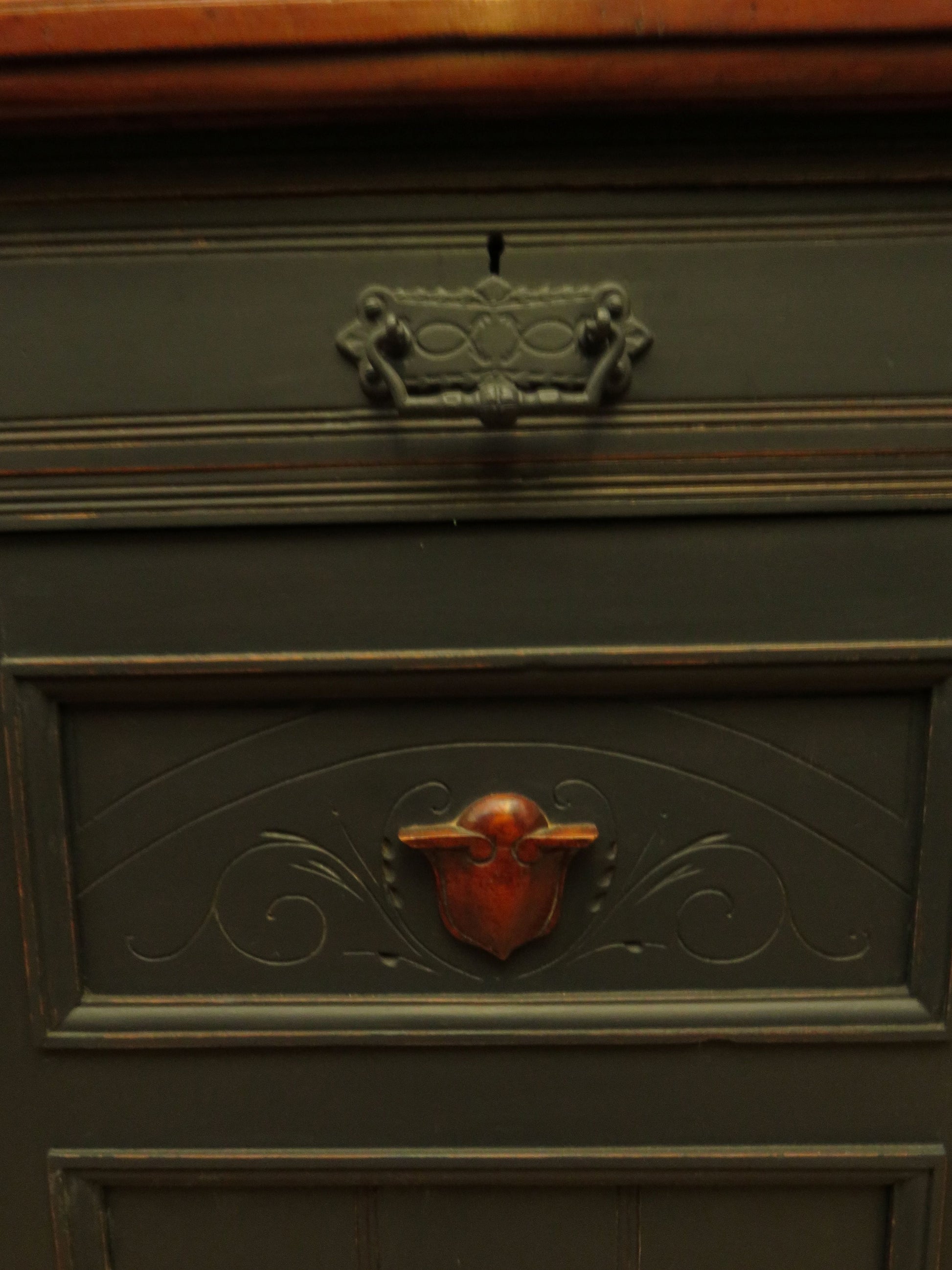 Antique Black Painted Sideboard with polished top