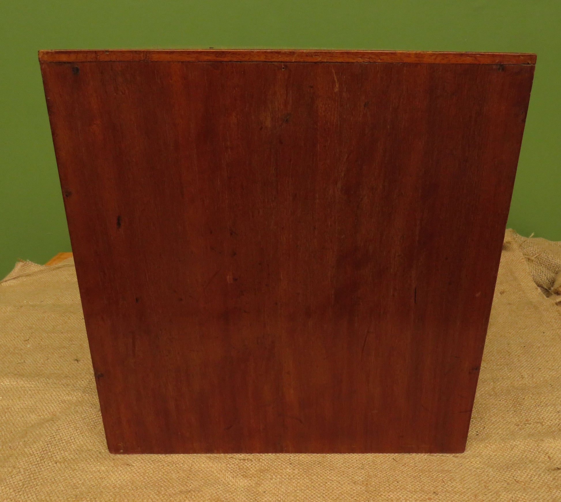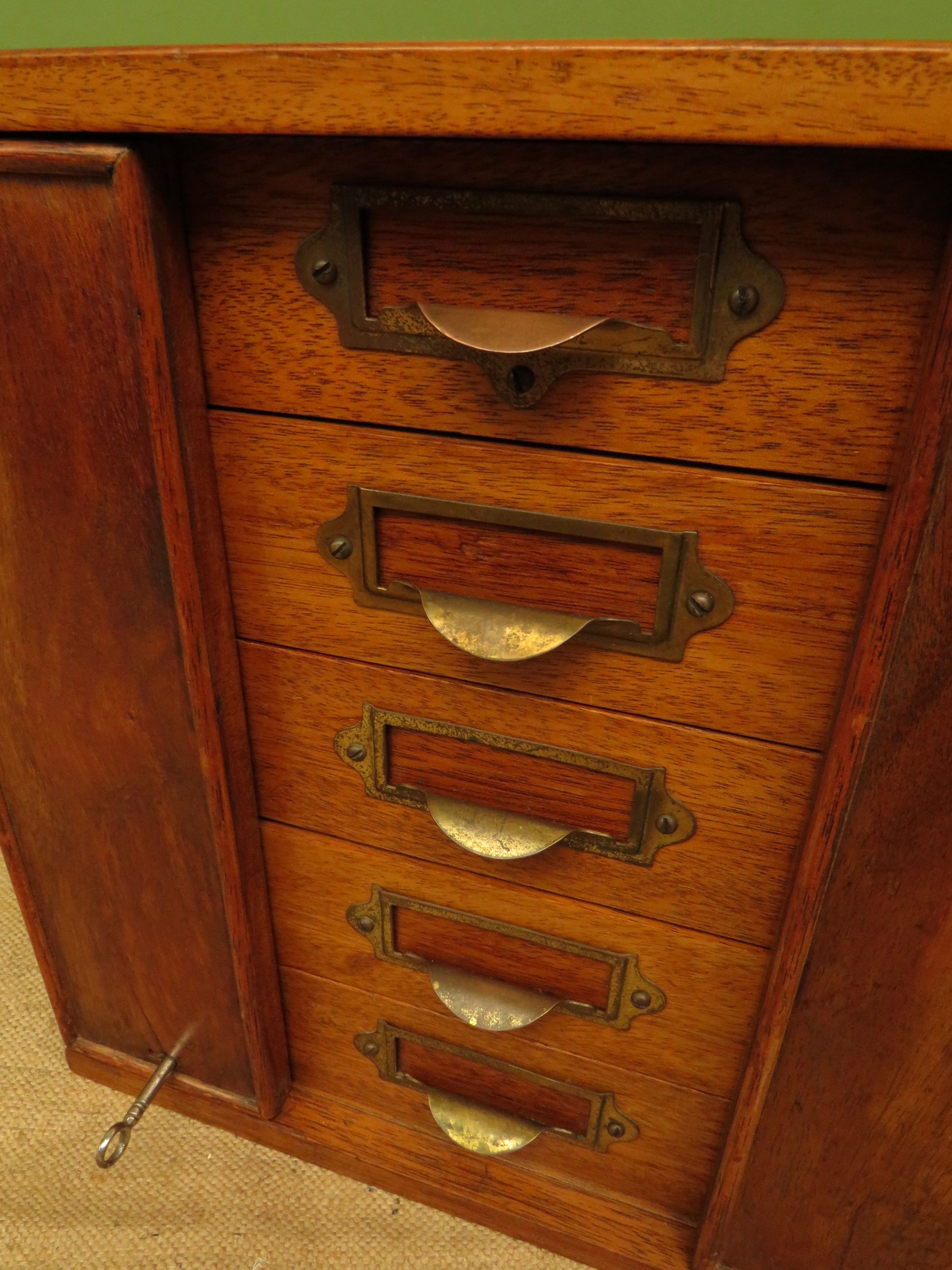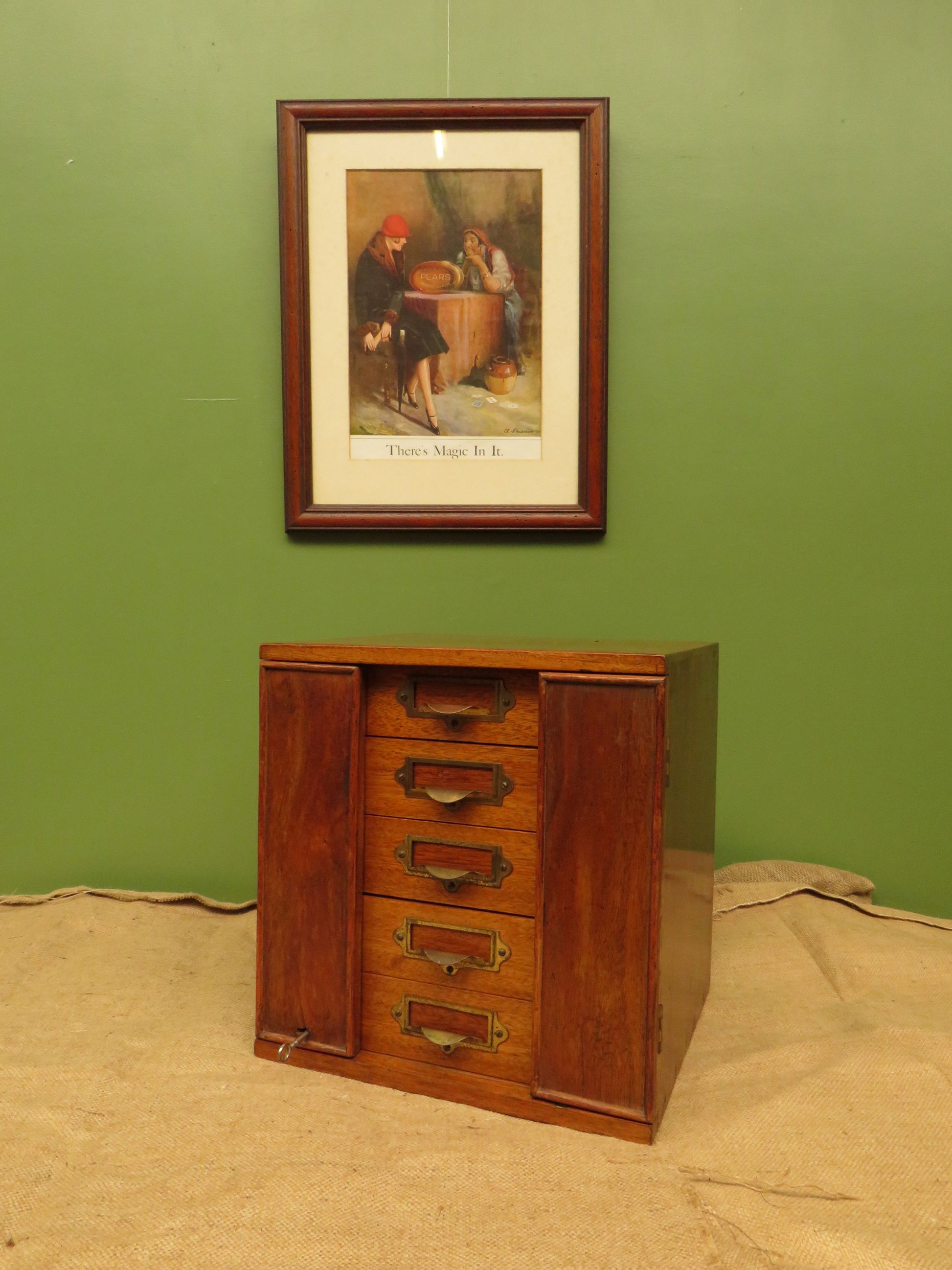 Originally designed as a collectors chest or possibly for filing paperwork this small chest is ideal for use in an office or workshop. Made of mixed woods and plywood it is fairly compact and is perfect for use on the top of a desk or table.