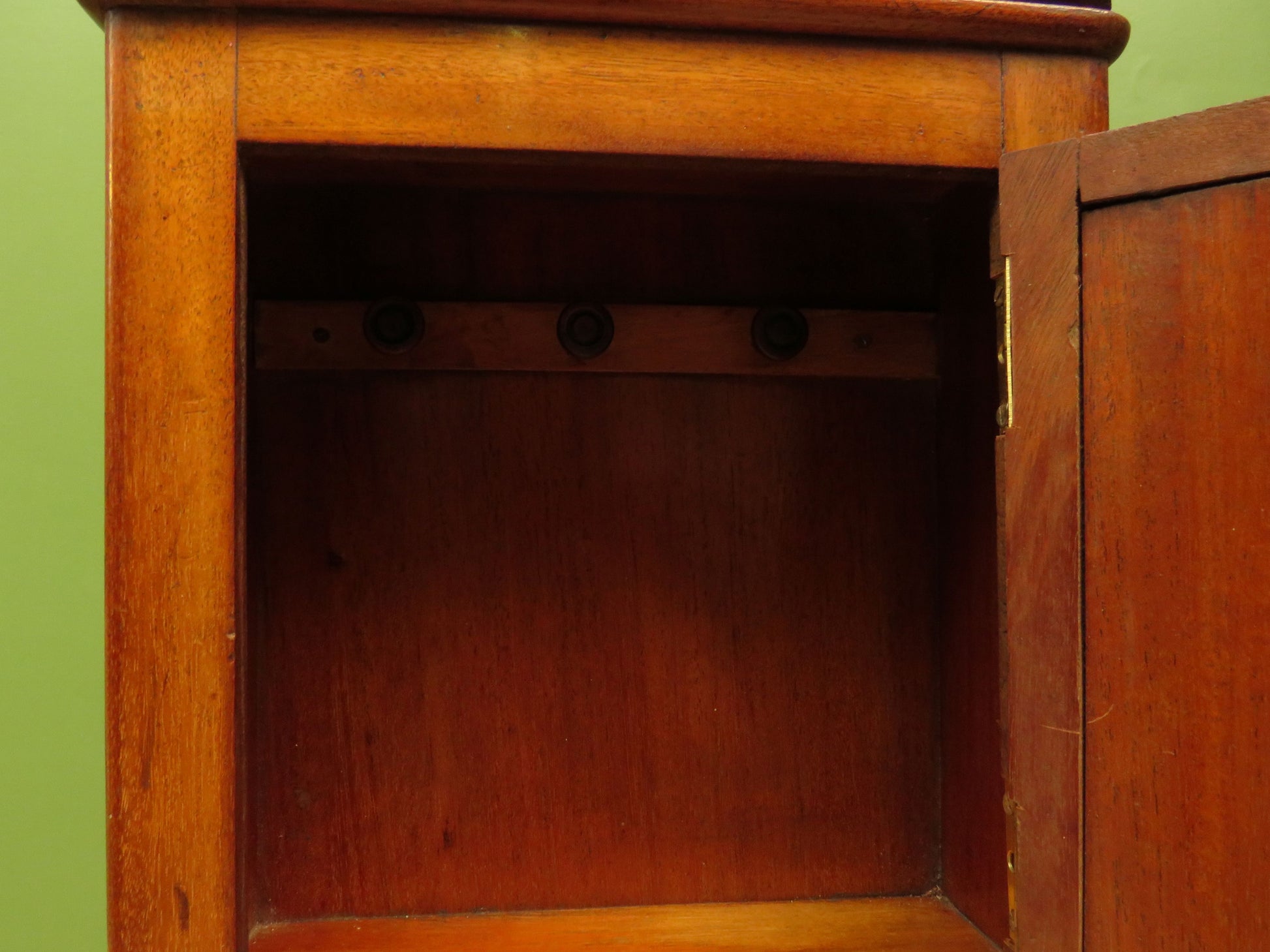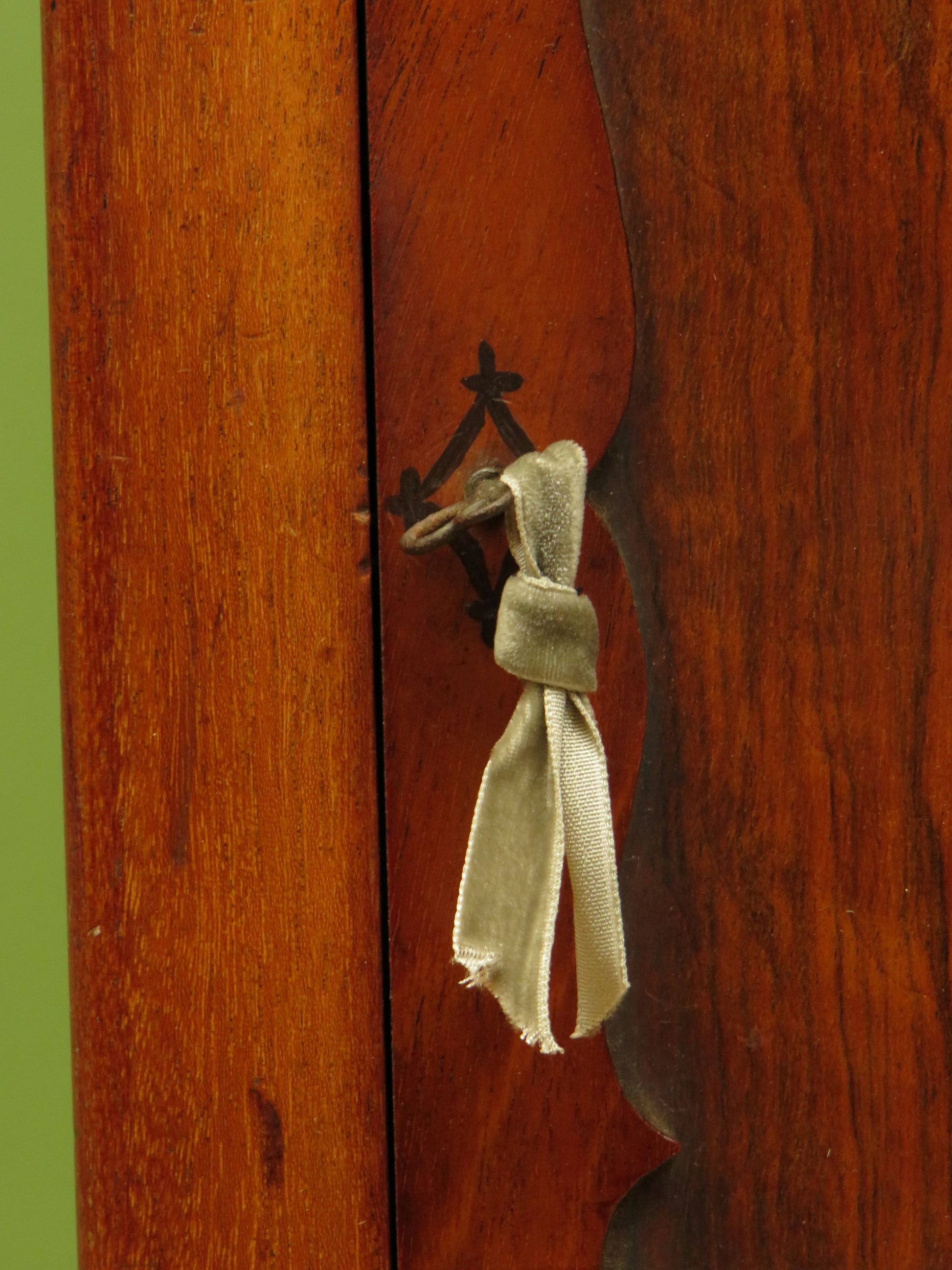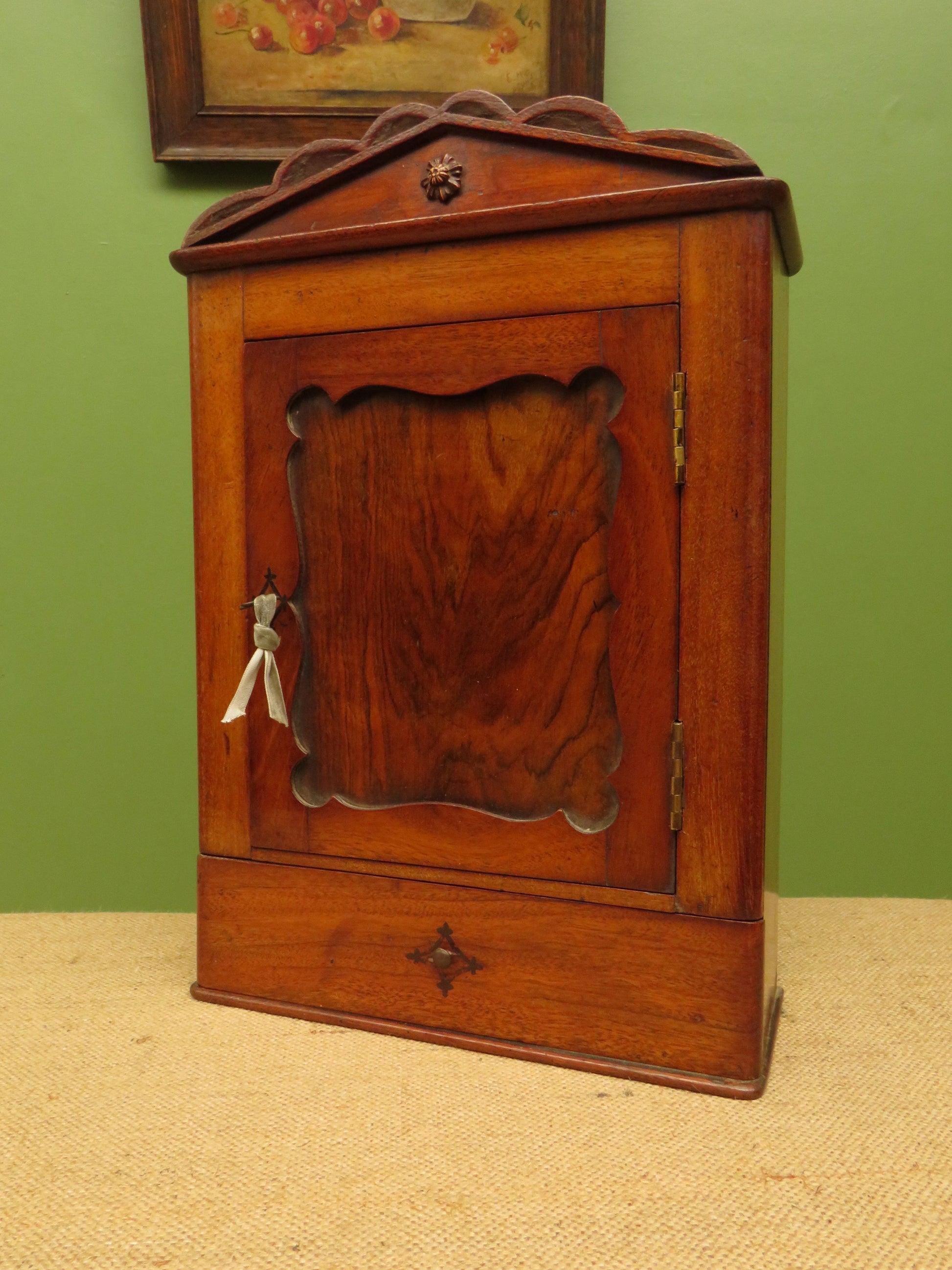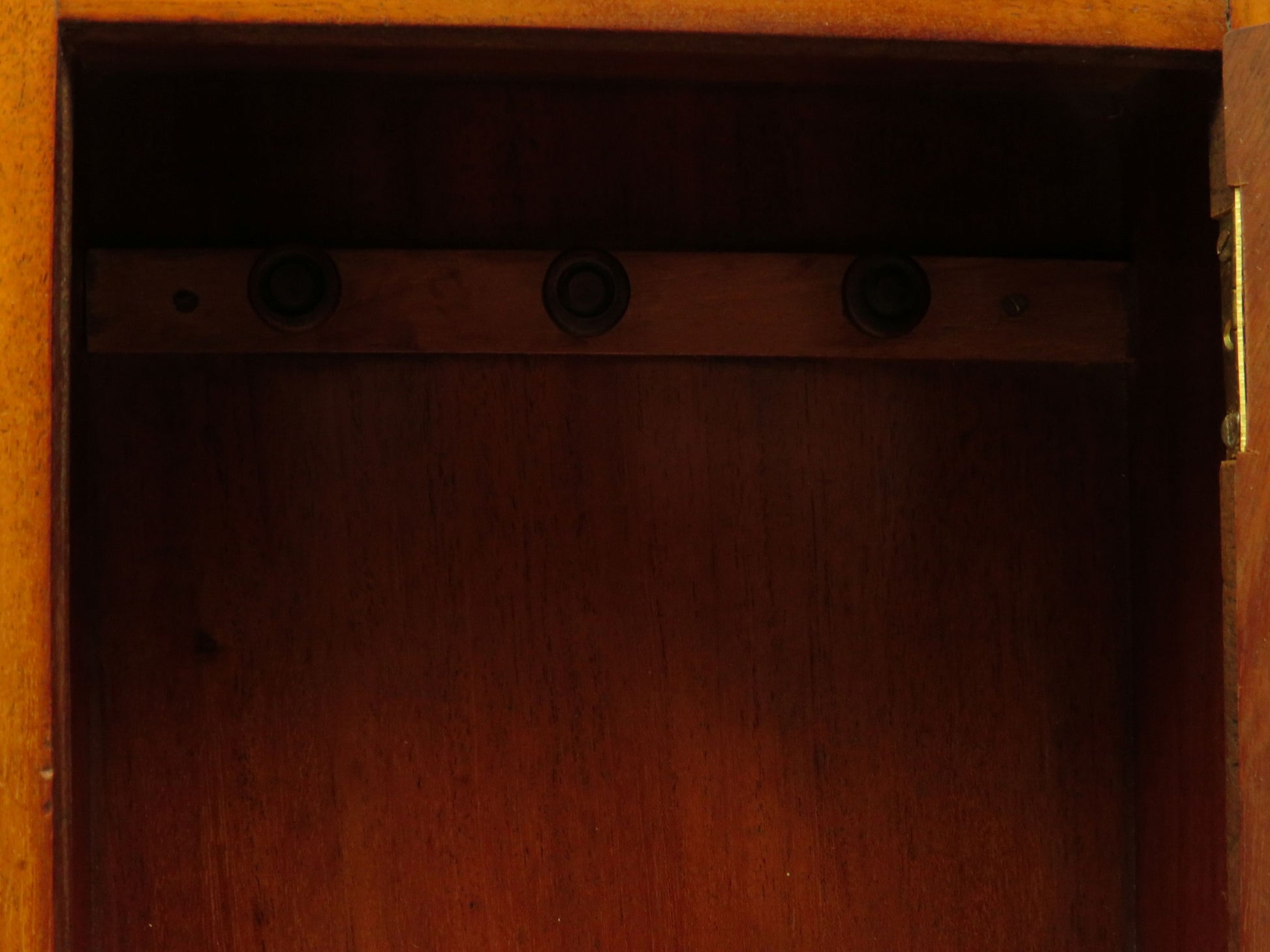 Made of mixed woods this handmade piece is perfect for use as a key cabinet and is fitted internally with small turned knobs to hang keys, it could also be used for jewellery.