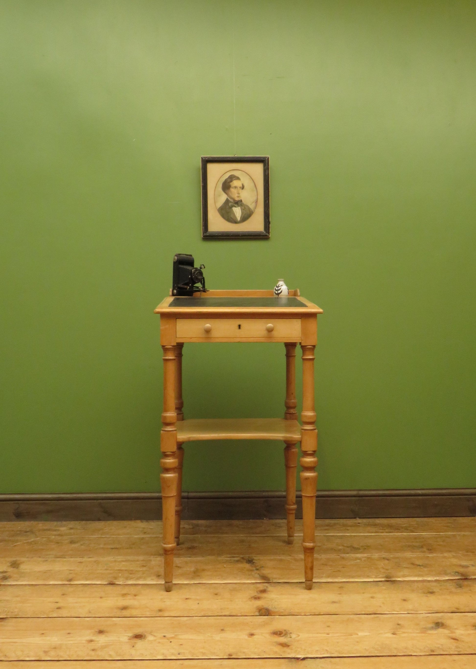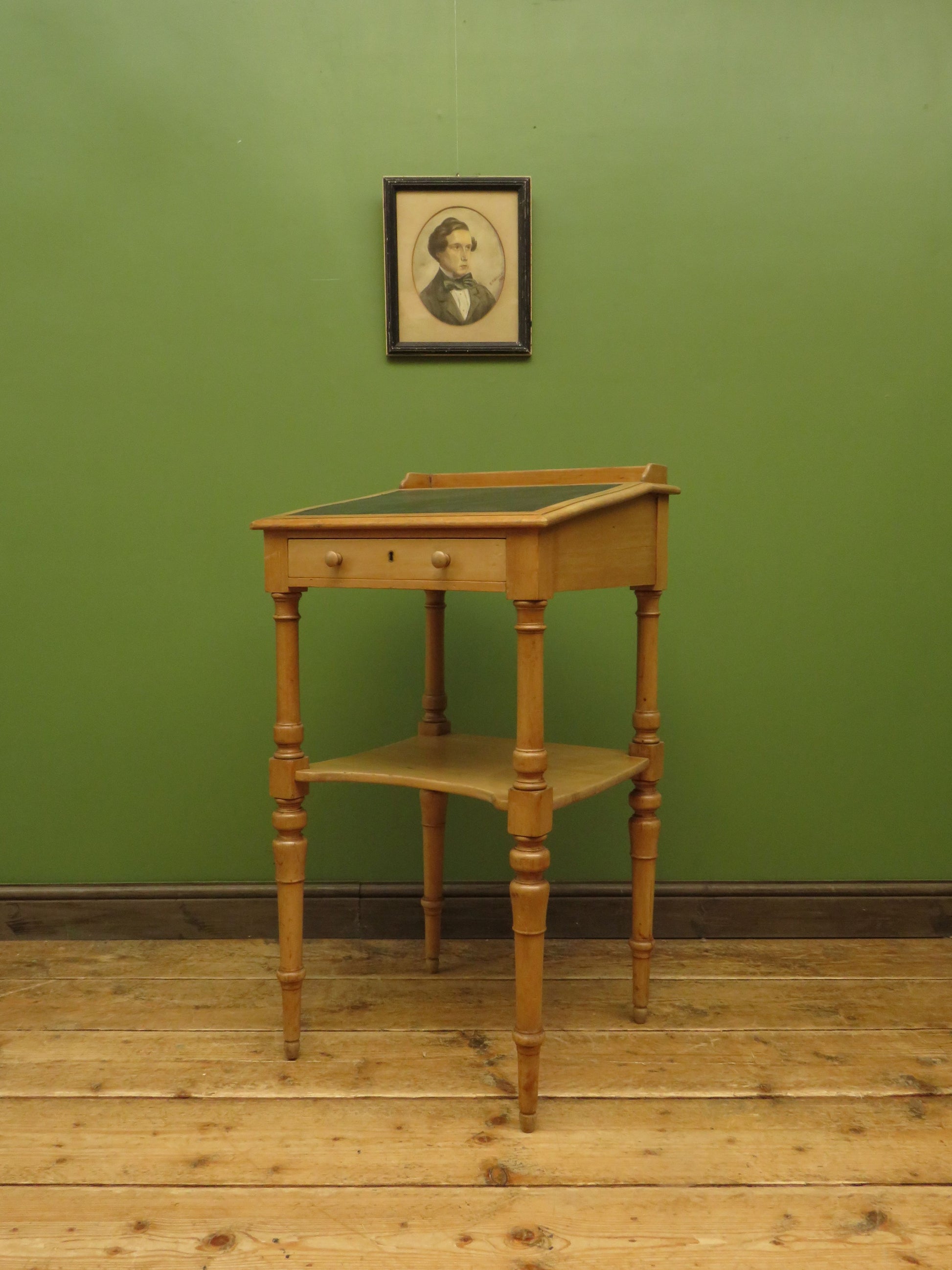 Made of pine and rather lightweight it is perfect for use in an office or study or any room with limited space. The desk could also be used as a small lectern desk for teaching.
