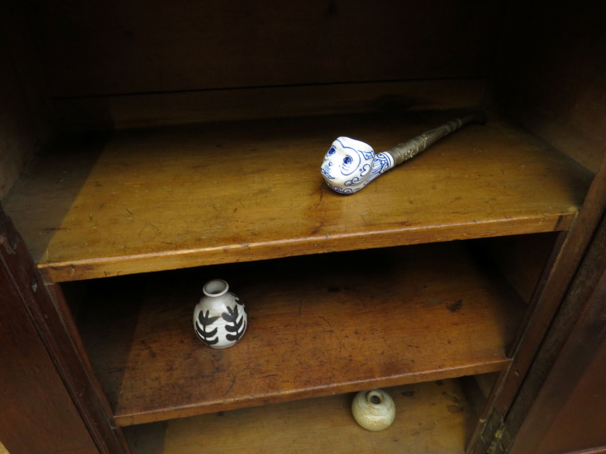 The top door may be a later addition or may have been modified at some point in time, there is a small cut-out on the inside where a hinge once sat.