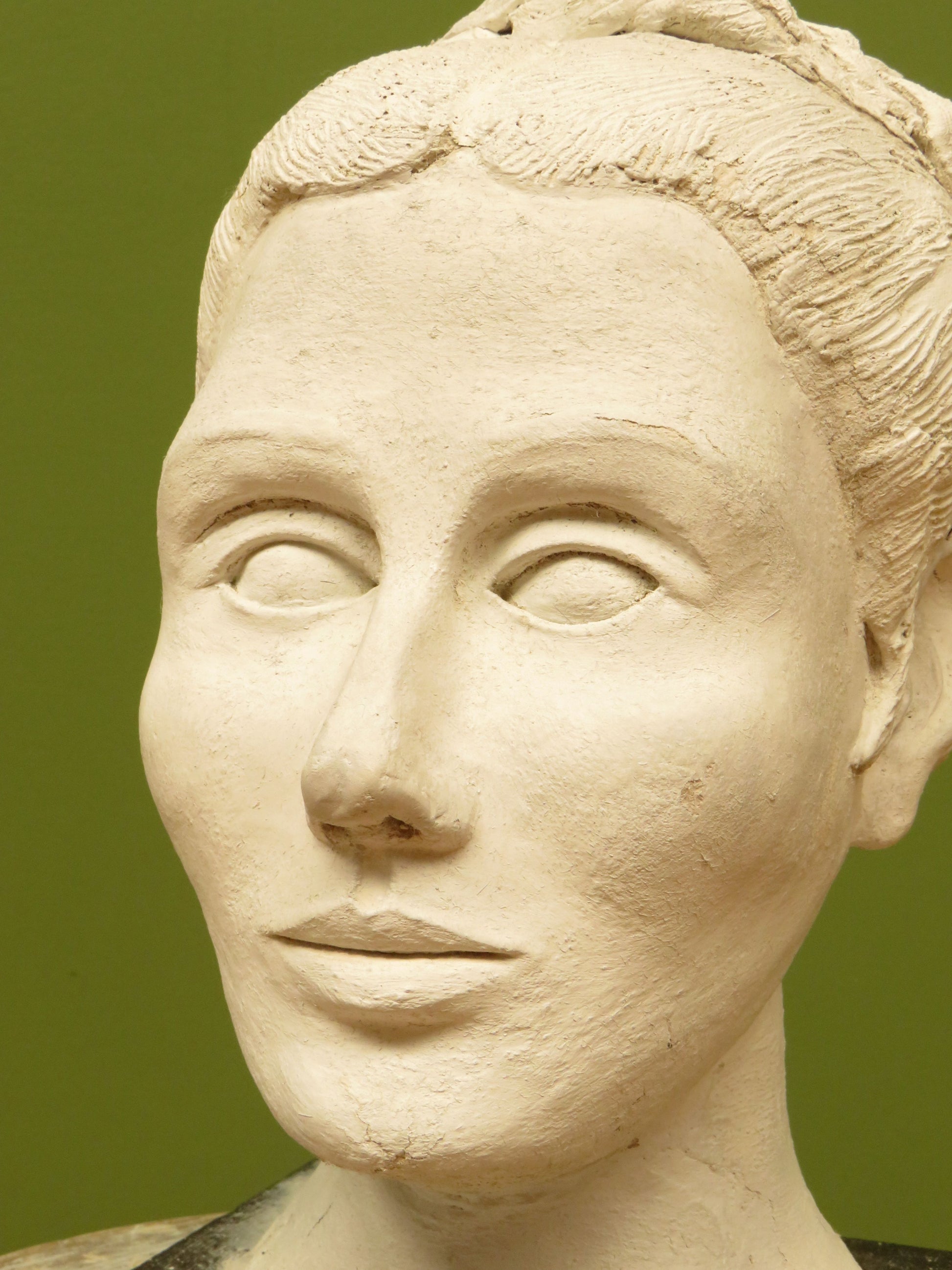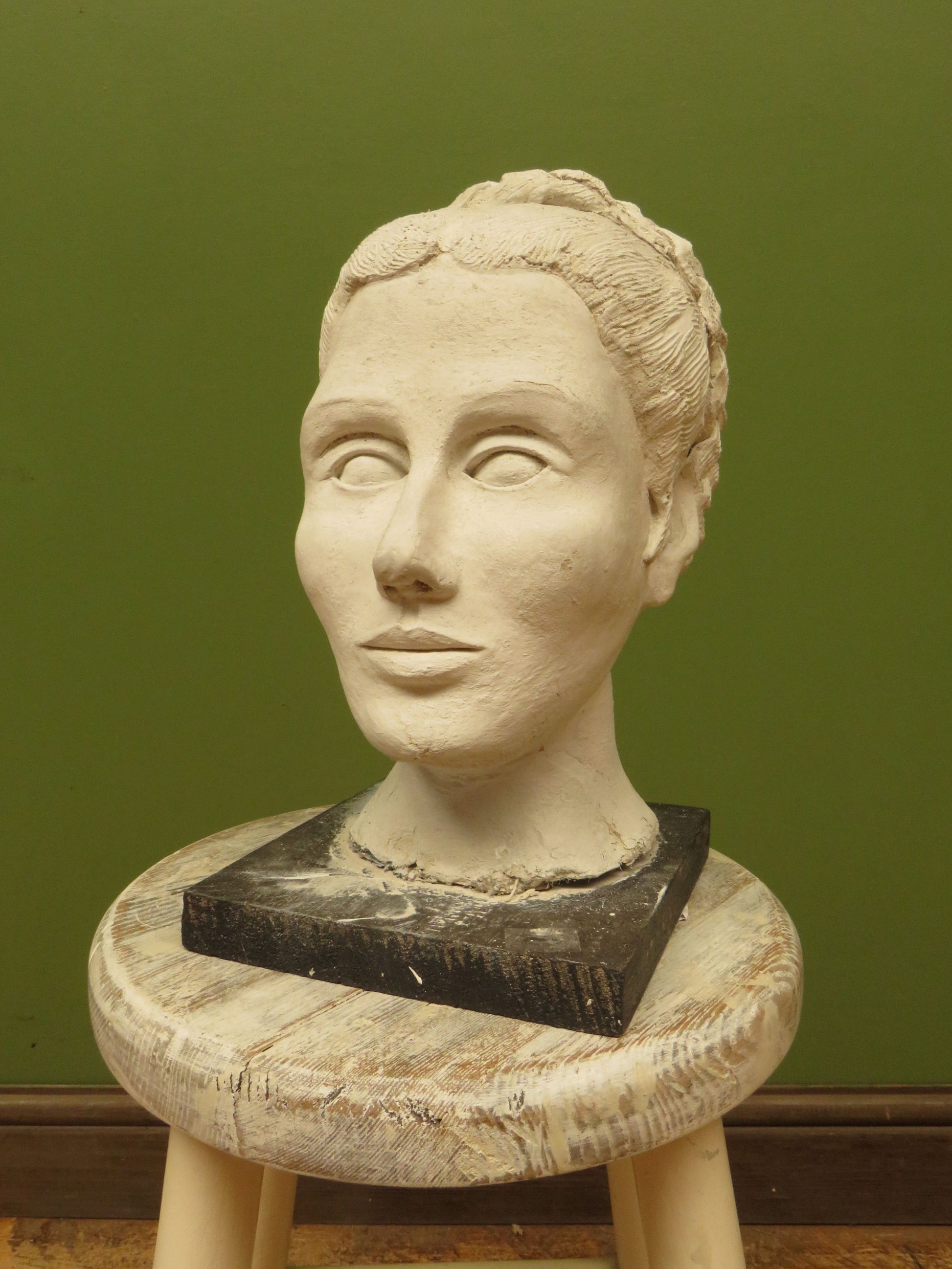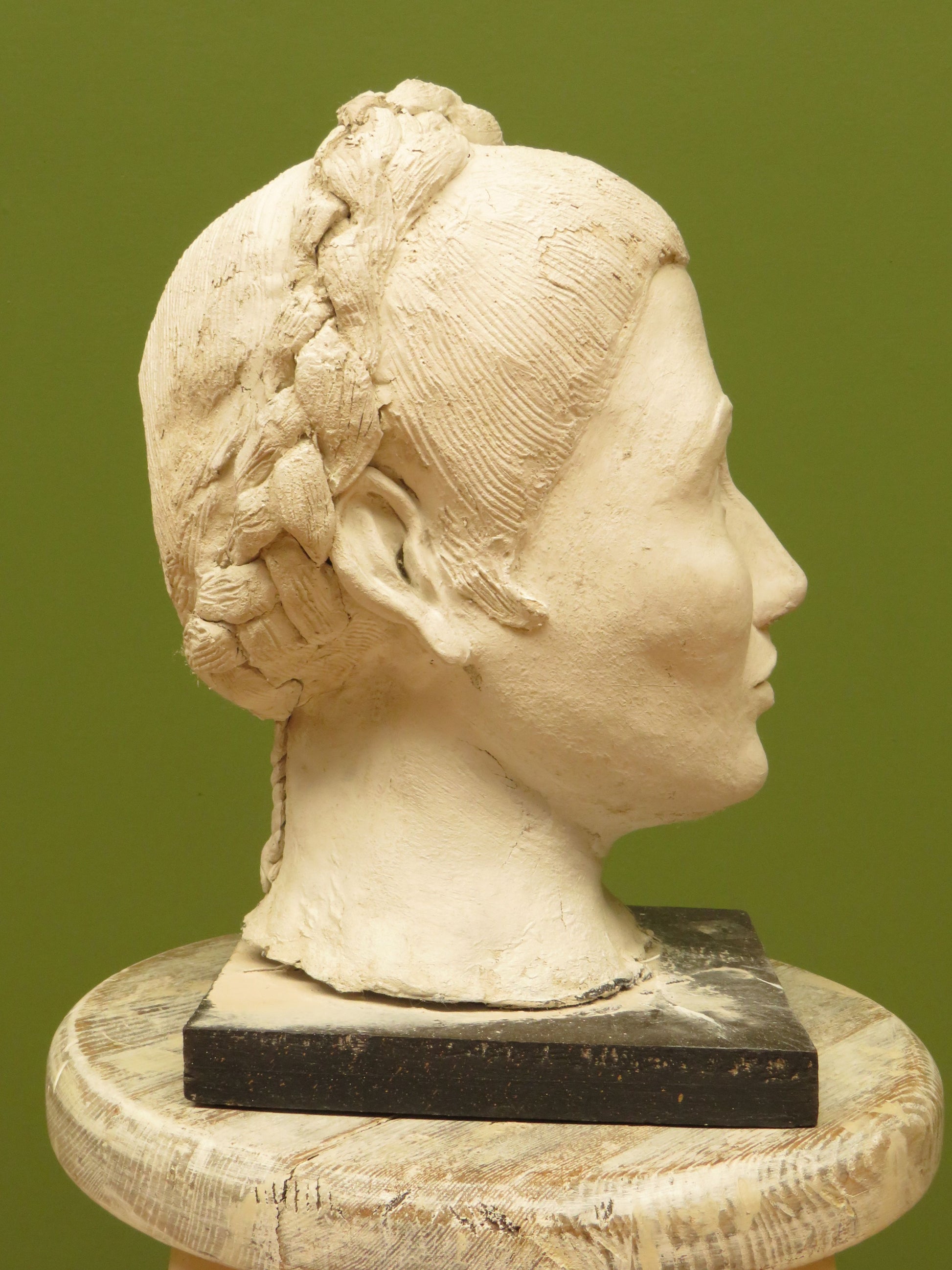 A vintage heavy cast plaster bust of a ladies head, cast from a sculpted piece.