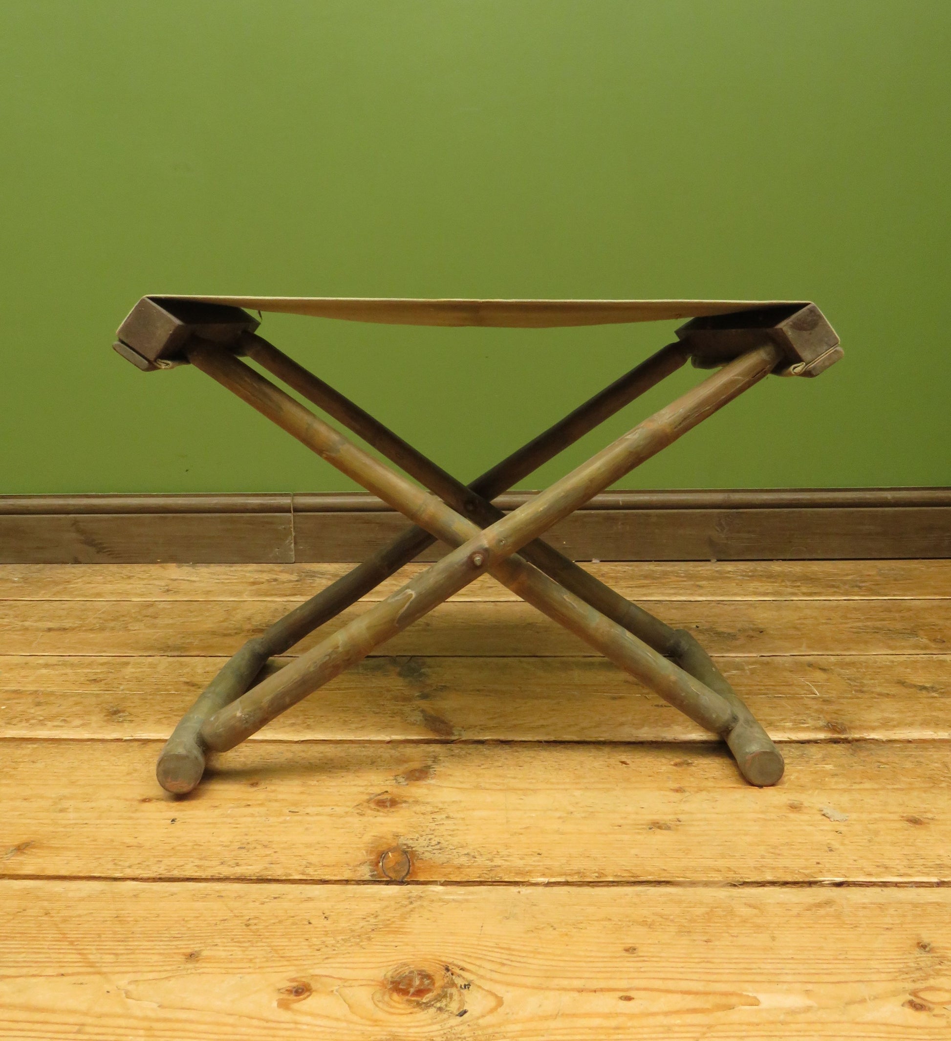 Vintage Folding Campaign Style Bamboo Stool