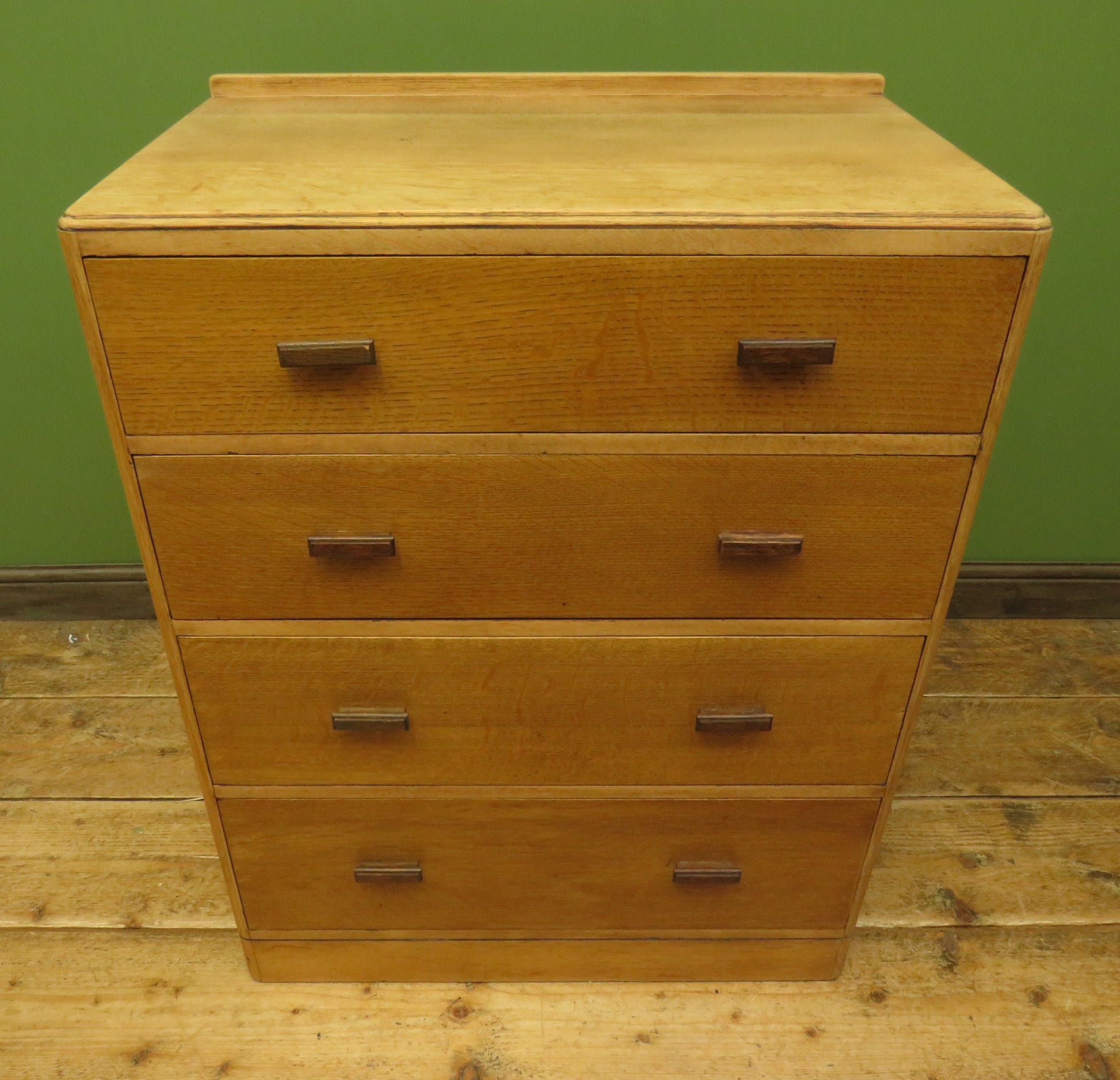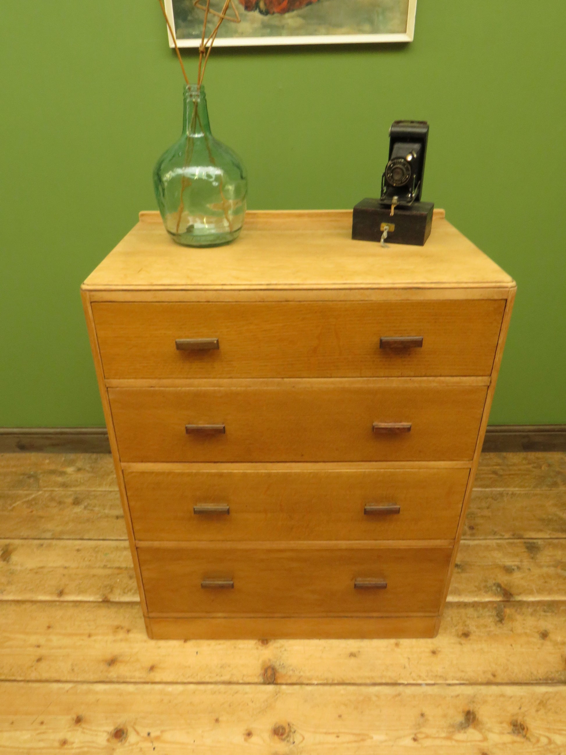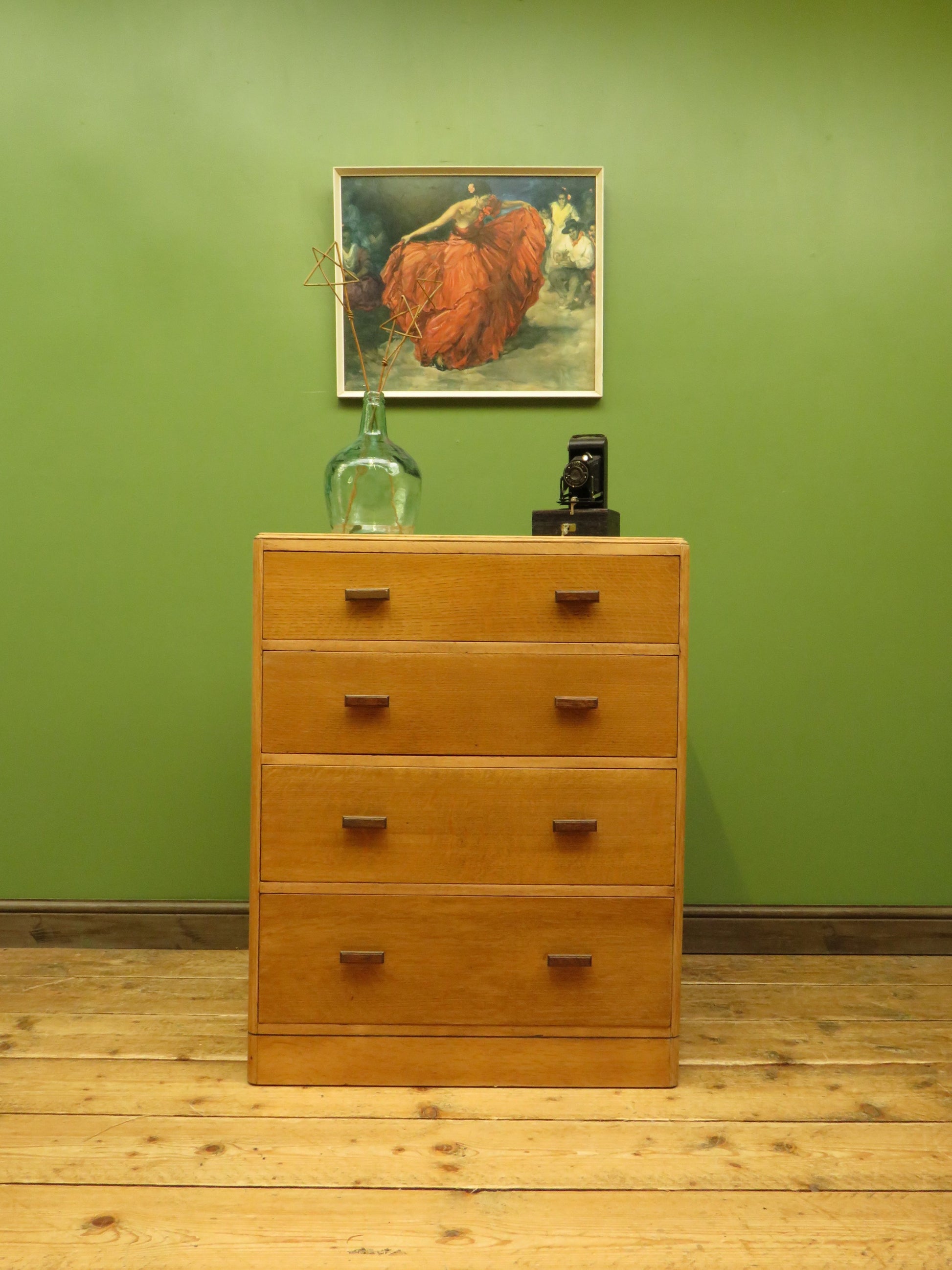The chest was made by 'Vesper' and is simply styled, similar in design to chests made by Heals in the same era.